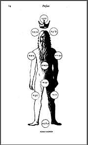 Juga dikenal sebagai Adam Kadamon, atau Adam Qadmaia. Menurut Z'ev ben Shimon Halevi, baik Adam Kadmon maupun Tree of Life(pohon Kehidupan, yang berisi 10 Sephiroth) mempunyai rancangan yang sama. Adam Kadmon berfungsi sebagai tindakan di alam yang nyata, sebagai counter-balance (lawan untuk penyeimbang) dari alam tidak nyata (ghaib dalam khazanah Islam), selain sebagai alam semesta kecil, mikrokosmos sebagai lawan penyeimbang alam yang lebih besar. Dalam kitab Genesis dalam pentateuch / Perjanjian Lama, dinyatakan bahwa Tuhan menciptakan manusia dalam citra Kita (Tuhan), dan para Qabalis menafsirkannya sebagai Adam Kadmon, bukan Nabi Adam 'alaihissalam, dan sebagai cerminan dari sang Pencipta (sengaja tidak menyebut Tuhan, untuk menekankan pada fungsi), Adam Kadmon juga memiliki daya cipta / kreasi, dalam skala yang lebih kecil tentu saja.